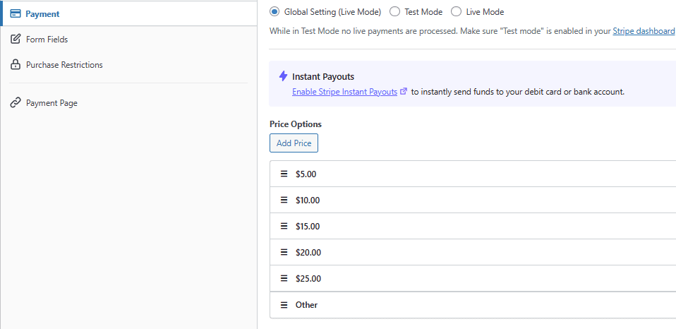 Once you’re all set, you can go ahead and preview the form to figure out if it’s working as it should. After double-checking all the configurations and making a test payment, you can change the mode from test to Live when you’re ready to accept donations.