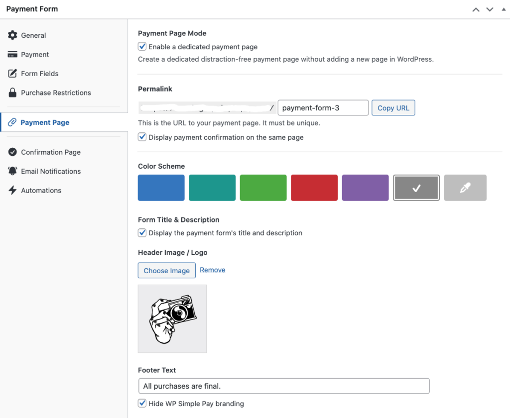 Unlike many Stripe payment plugins for WordPres, WP Simple Pay lets you connect your own domain name to Stripe Checkout. Remember, it’s all about branding and setting yourself apart as a photographer. Using your domain name on your Stripe Checkout page strengthens your credibility and improves brand recognition.