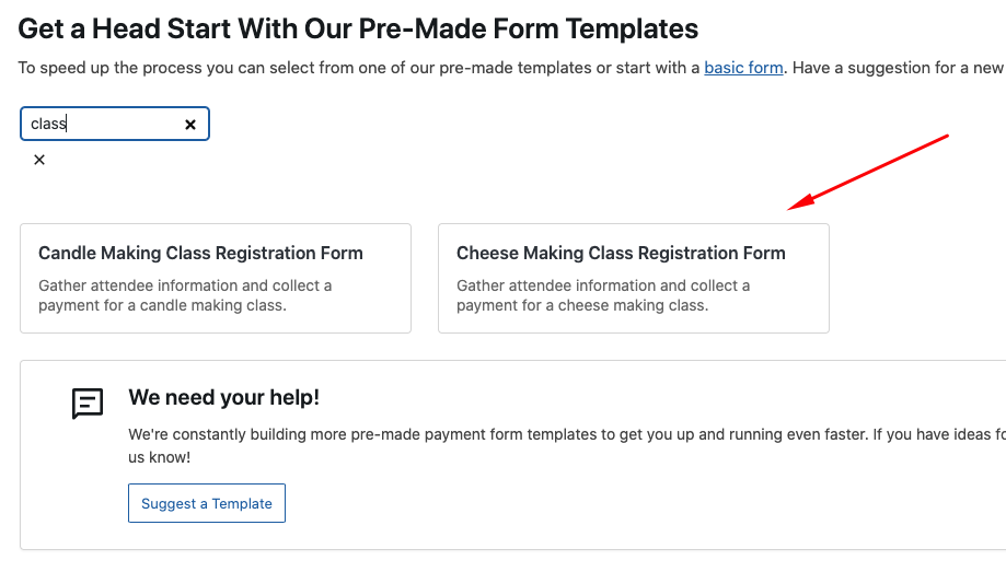 While WP Simple Pay offers several templates for services, let’s go ahead and choose Payment Form.