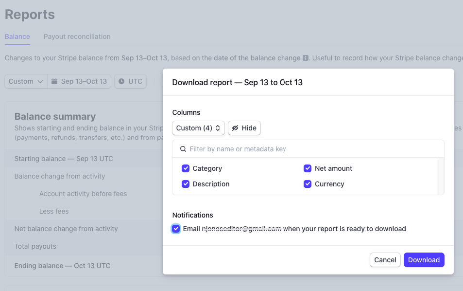 These reports can be customized to include different types of information. In terms of the format of your downloadable financial reports, Stripe generally offers three financial report categories: