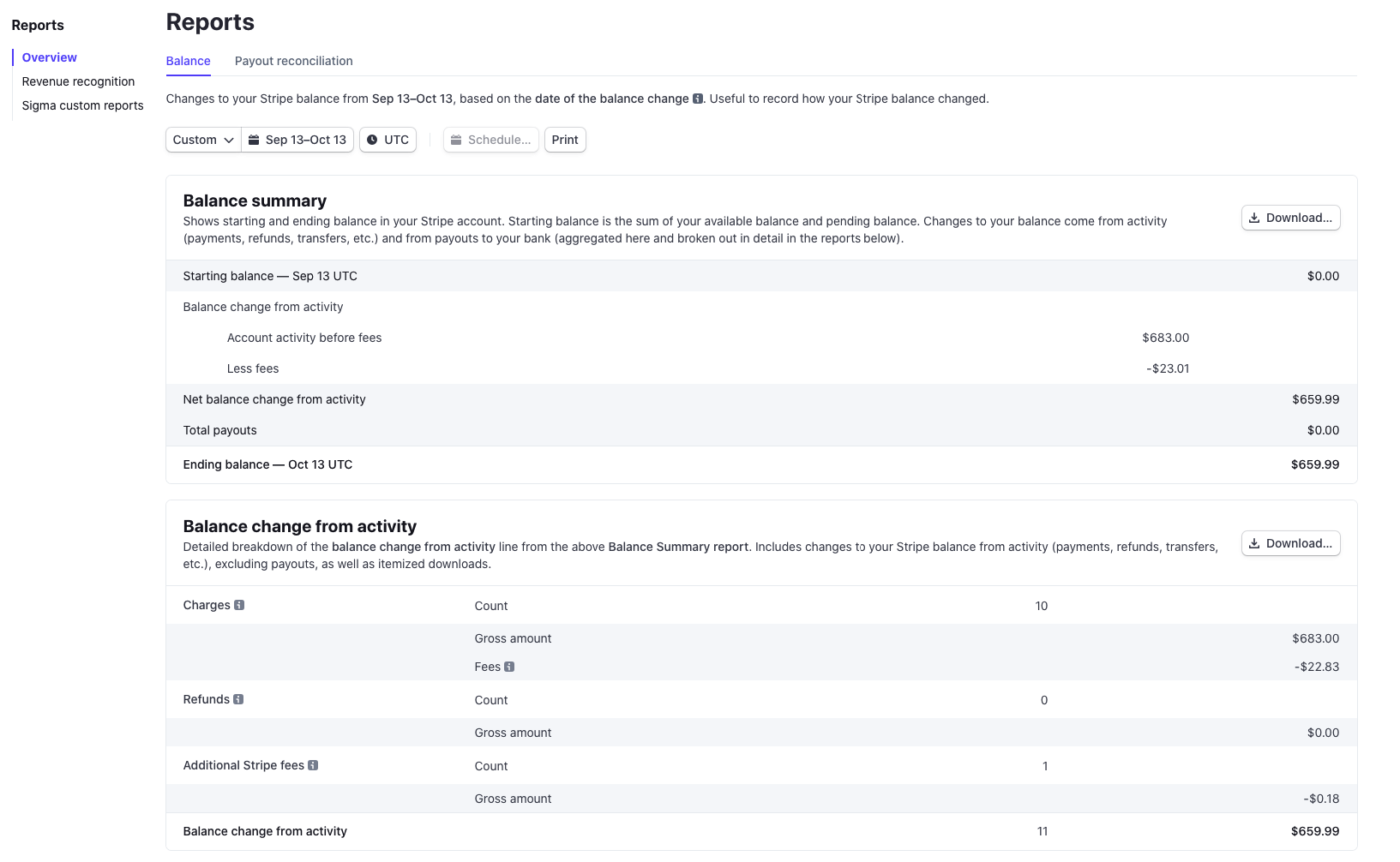 If your business frequently pays out from your Stripe account, which is often to a business bank account, it might be a better idea to go with a Payout Reconciliation report. These reports provide you with detailed information regarding your payouts.