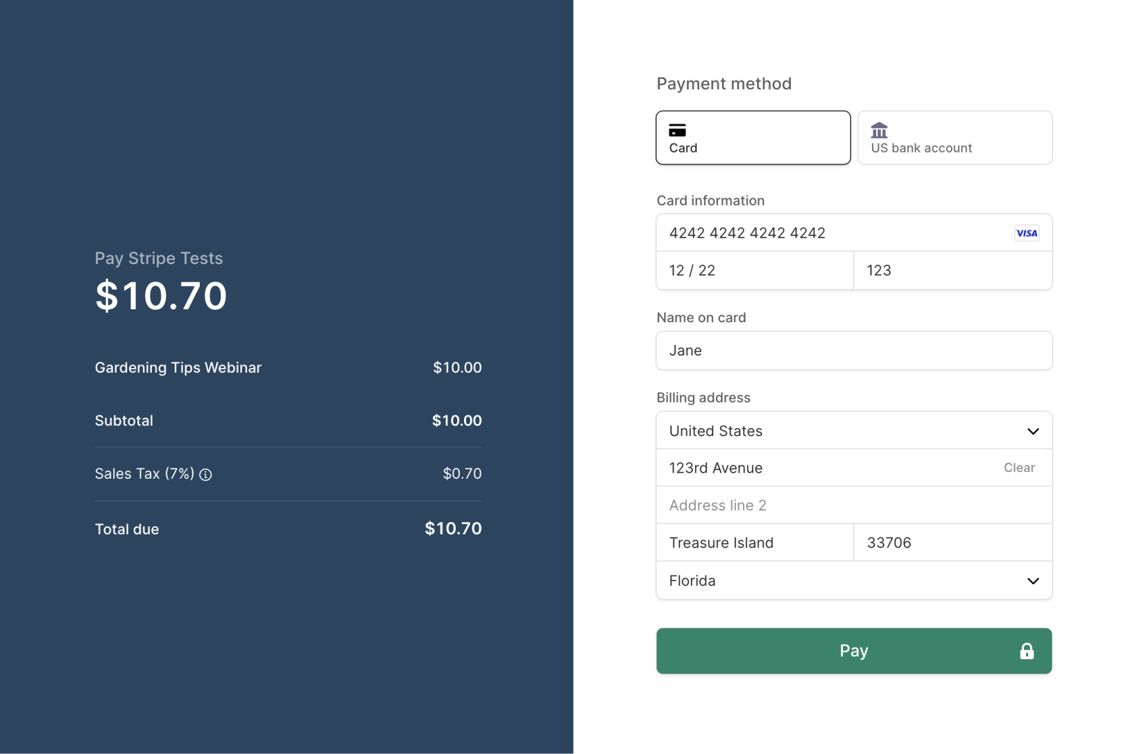With the new update, you can easily stay tax compliant by simply specifying the type of payment you are collecting and the origin address of your business! To help you stay compliant, Stripe Tax uses the payee’s billing address to calculate and collect the right amount of tax. It also validates the EU VAT ID and Australian ABN number when needed.
