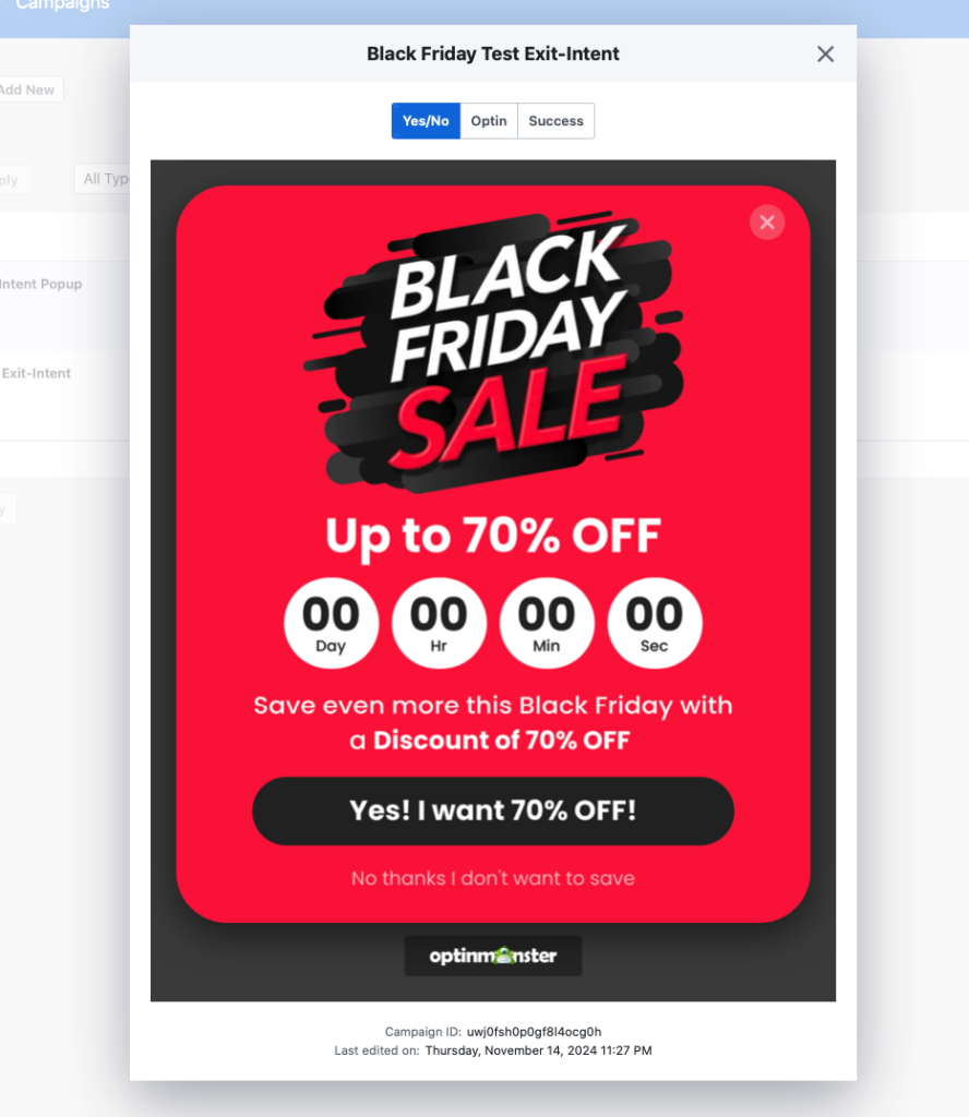 Da haben Sie es! Wir hoffen, dieser Artikel hat Ihnen geholfen zu lernen, wie Sie ein Black Friday Exit-Intent-Popup für Ihre WordPress-Website erstellen.