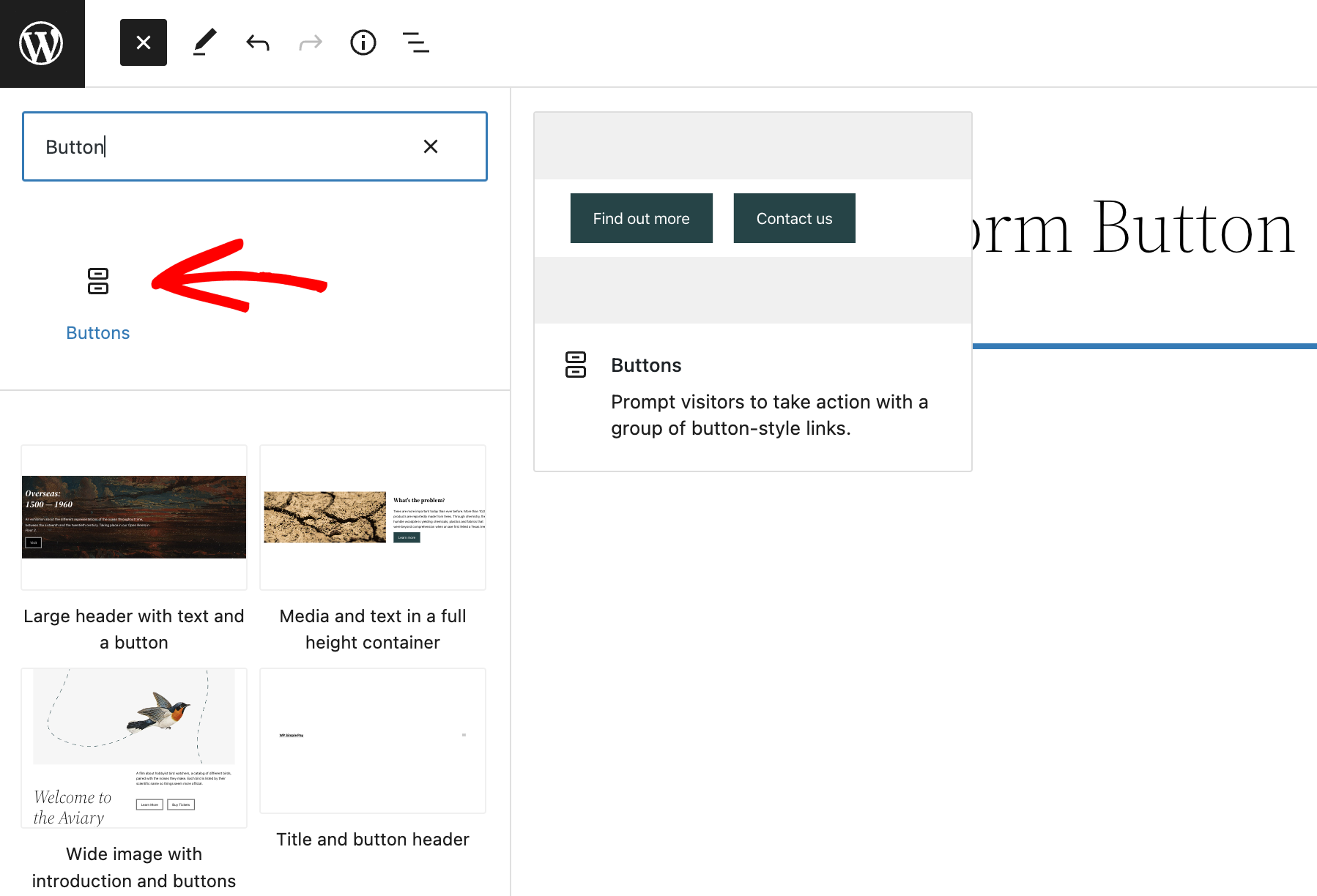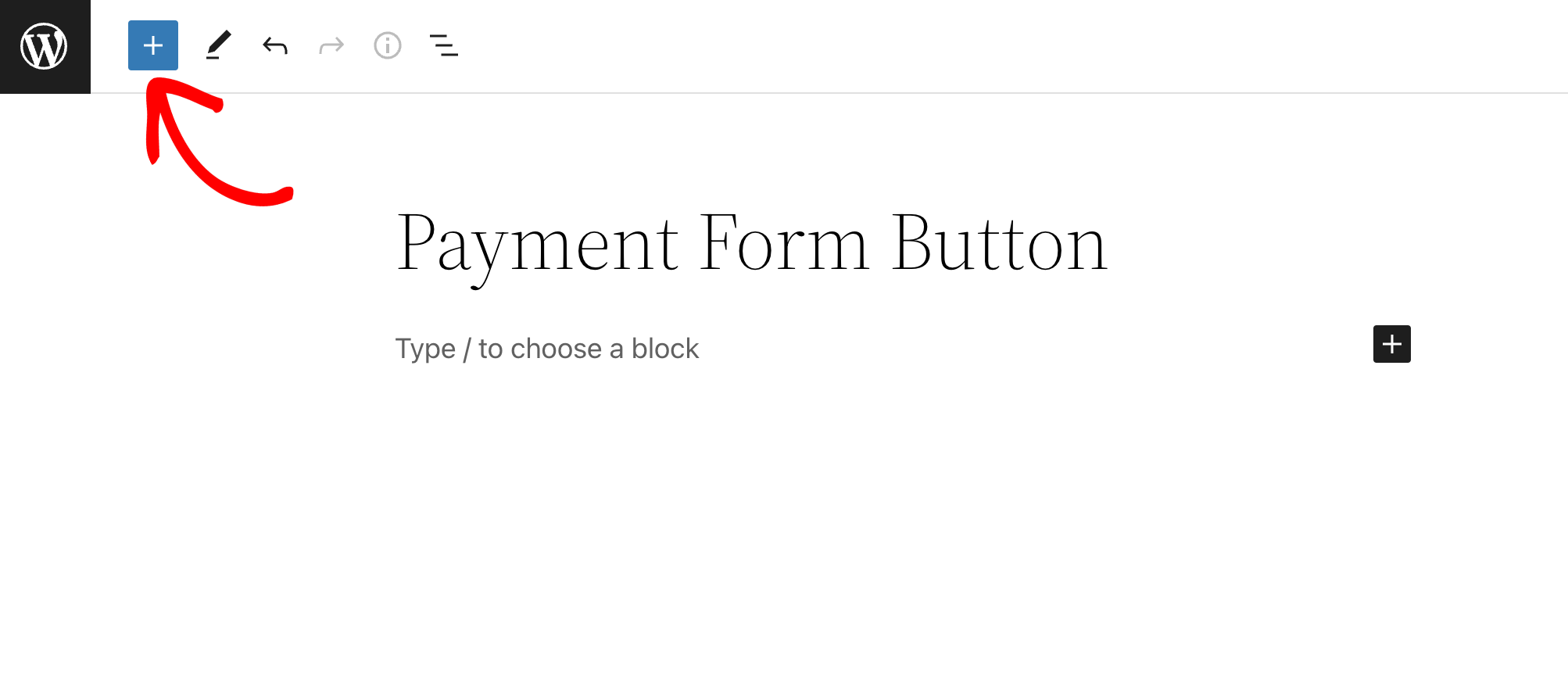 With your block-compatible payment form created, you’re ready to add the Button block to launch your payment form or redirect to Stripe Checkout. Visit Pages → Add New. Click the “+” icon to insert a new block, and search for “Button”.