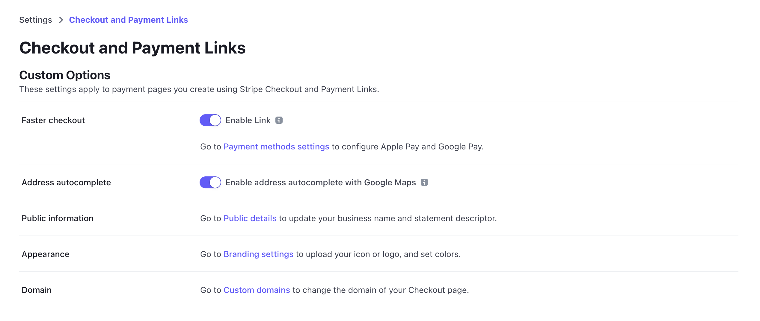 Among the various settings you can configure for Checkout such as Faster Checkout and Address Autocomplete.