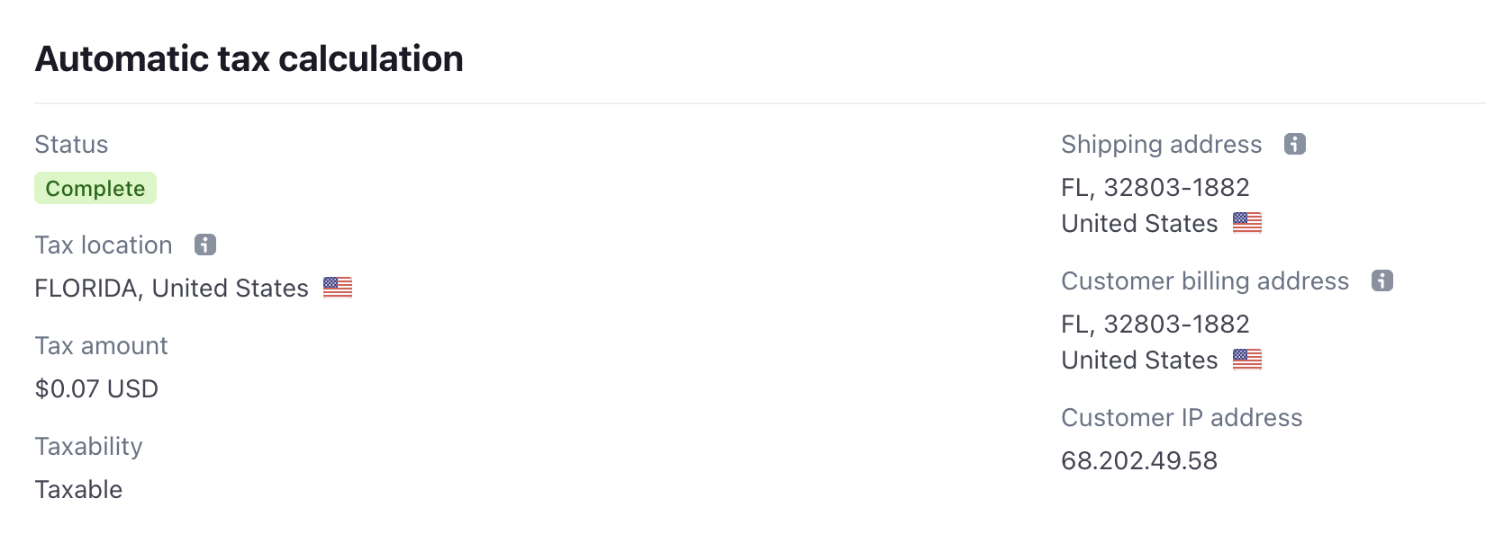The Stripe Dashboard lets you view tax amount breakdowns on payments or subscription records.