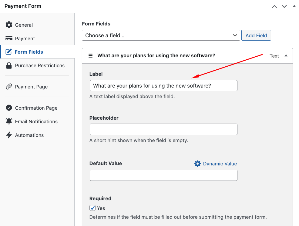 WP Simple Pay lets you easily add custom fields to your payment forms using its advanced drag-and-drop form builder. The plugin offers dropdowns, text fields, and checkboxes.