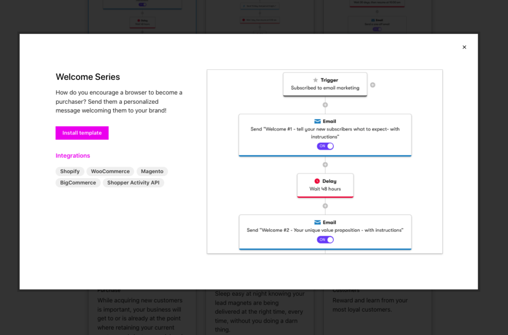 Keep in mind that Drip, a popular email marketing and automation platform, offers a pre-built template with workflow automation to help you create a welcome series.