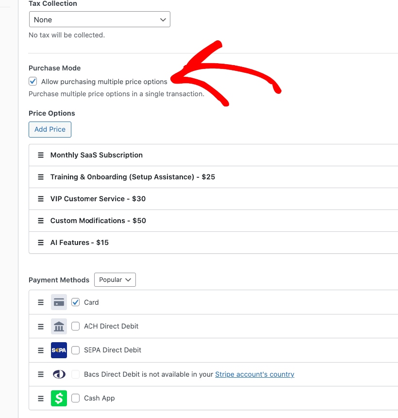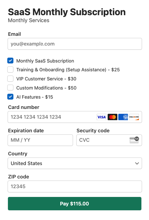I use WP Simple Pay to create payment forms with add-ons because the plugin makes it super easy to customize my Stripe payment forms for several types of products and services without coding.