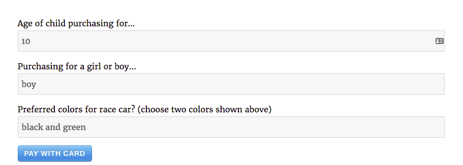 My young entrepreneur used a basic WordPress site and WP Simple Pay Pro to put his mini race car Lego kits up for sale. Since he doesn’t have a checking account yet, I let him use my Stripe account for now.