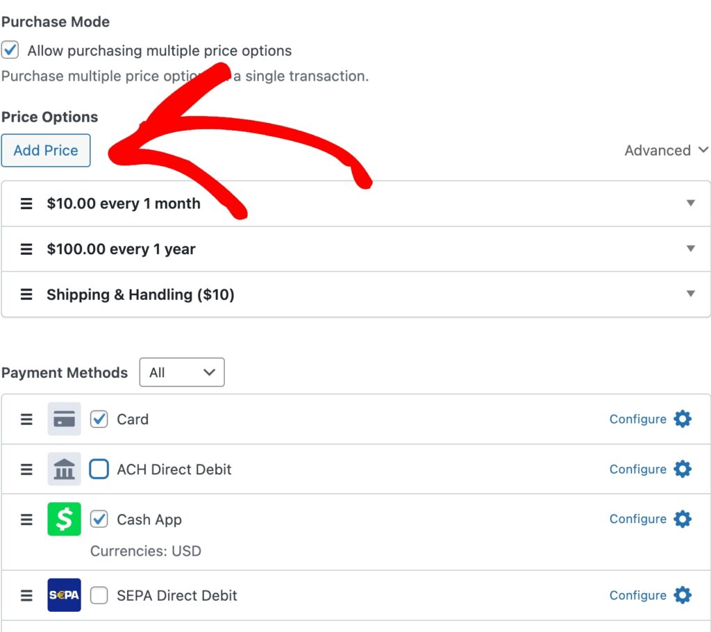 When you’re finished, click the Payment tab and check the box next to Allow purchasing multiple price options.