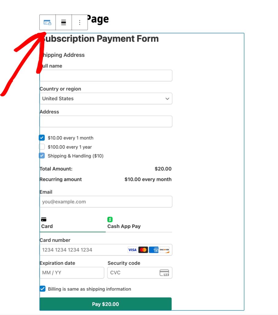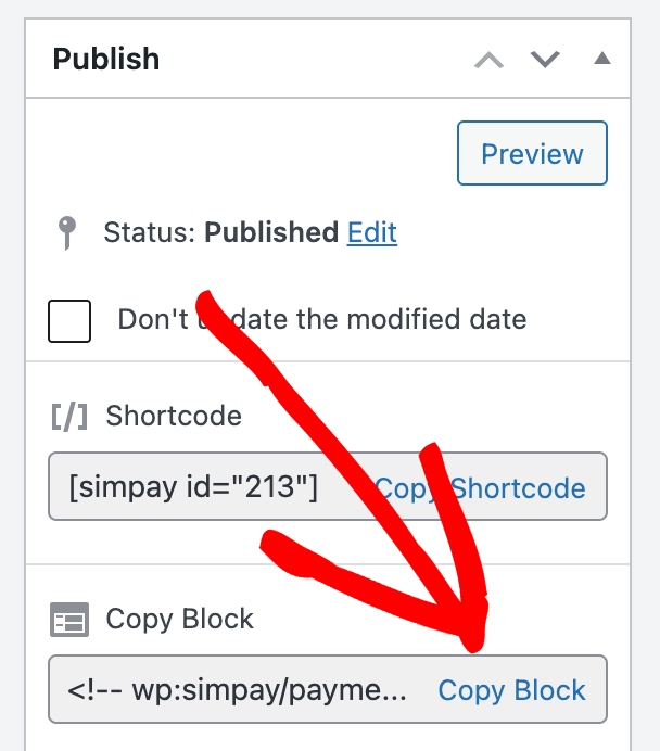 Once you’re on the payment page you want the form on, you can paste it directly into the Block Editor.