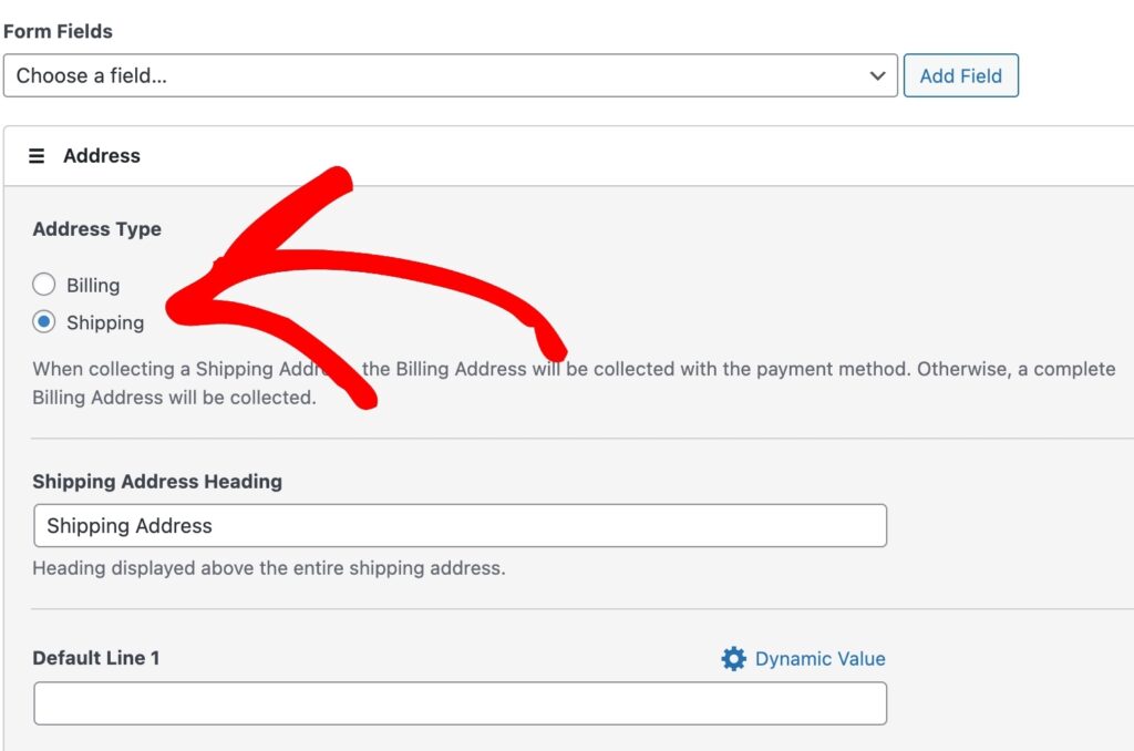Since you’re offering shipping and handling, be sure to select Address from the dropdown menu and click Add Field.