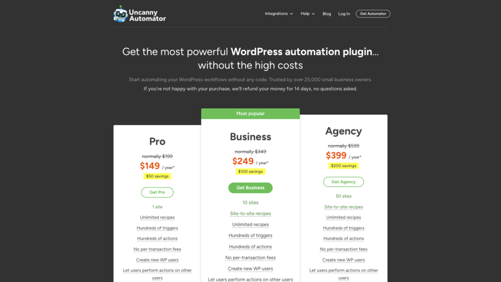 Uncanny Automator is a powerful plugin for WordPress that allows you to automate different tasks and functionalities on your site. It integrates with tons of apps and platforms to help you cut down on development costs and enhance your site’s capabilities.