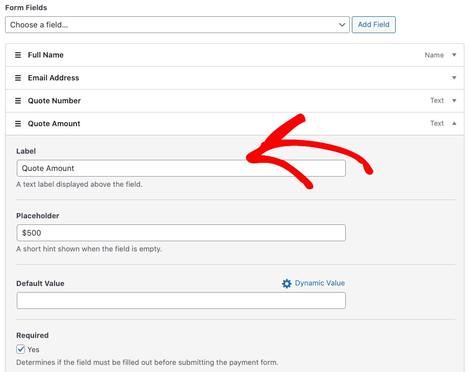 For the purpose of this tutorial, we’ll create an accepted quote payment form that you can use to let customers complete their transactions directly on your site. One of the best parts about using WP Simple Pay is that you can add, edit, and remove custom form fields using the advanced drag-and-drop form builder.