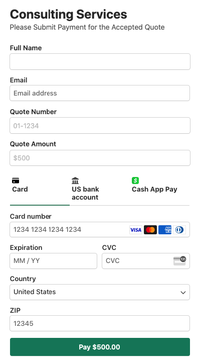For businesses that offer specialized services or custom products, allowing customers to pay an accepted quote eliminates the need for offline interactions.