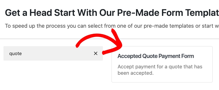 You should now be on the pre-built payment form templates library page. Go ahead and select the Accepted Quote Payment Form.