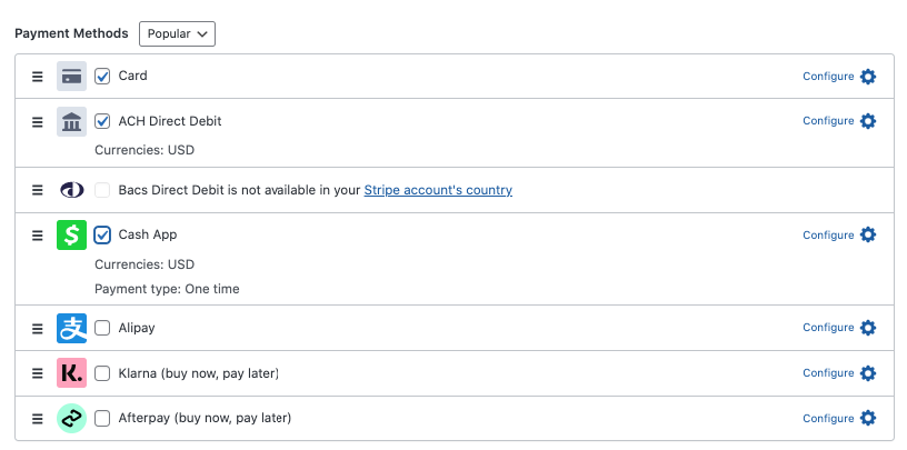 When you’ve finished configuring the pricing settings, scroll down and choose the payment method options you want to offer.
