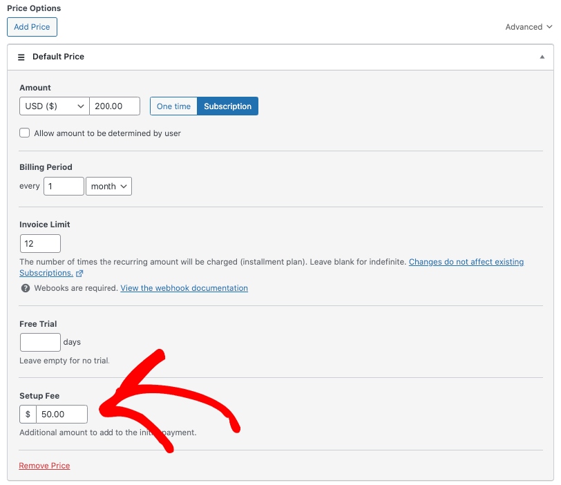 WP Simple Pay, the #1 Stripe payments plugin for WordPress, lets you collect online payments directly on your site without having to set up a shopping cart. The plugin also offers an advanced drag-and-drop payment form builder that enables you to customize your form’s fields, pricing options, and more. This means you can easily add an activation fee to your subscription payment form.