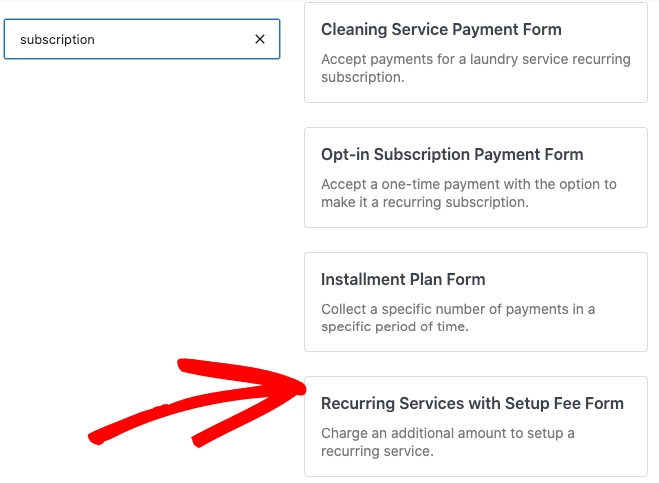 Go ahead and choose Recurring Services with Setup Fee Form.