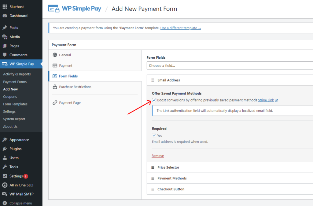 Before going straight to creating a one-click payment form, you’ll need to be sure Stripe Link is enabled in WP Simple Pay.