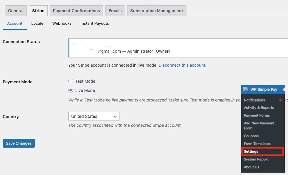 You can ensure that your Stripe account is connected to your website and in Live Mode by navigating to Settings » Stripe.