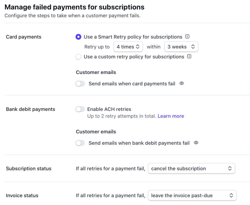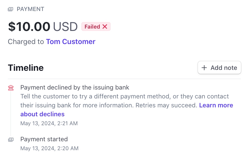 If your payment tool emails the customer on your behalf, make sure the email includes steps to fix the issue.