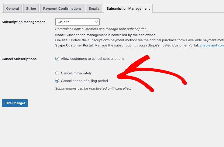 To learn more, see our step-by-step guide on how to allow customers to manage their subscriptions on WordPress.