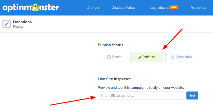 Once you’re happy with the design and settings, set the campaign Status to Publish and then Save your campaign. You can enter your site to preview the popup.