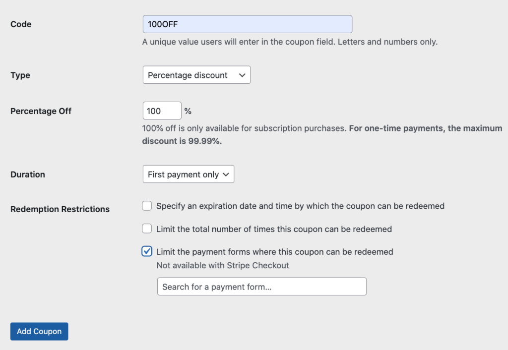 Now that you’ve created your 100% discount code, you’ll need to add it to your subscription payment form.