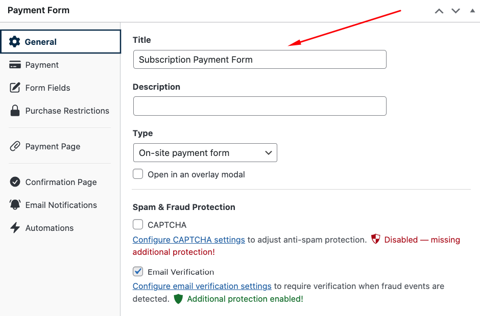 Next, in the General tab, add the title and description of your form in the provided fields.
