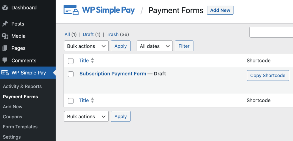 So far, you’ve installed and activated WP Simple Pay in WordPress. The next thing you’ll need to do is create a subscription payment form.