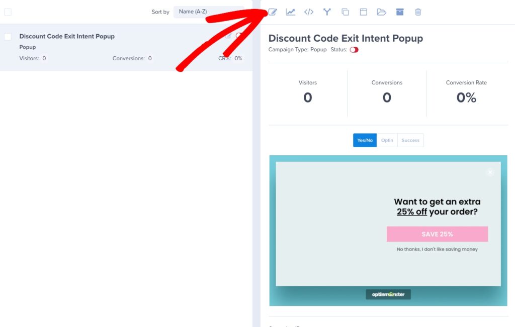 Now, let’s go back to OptinMonster » Campaigns, then click Edit Campaign under your campaign.