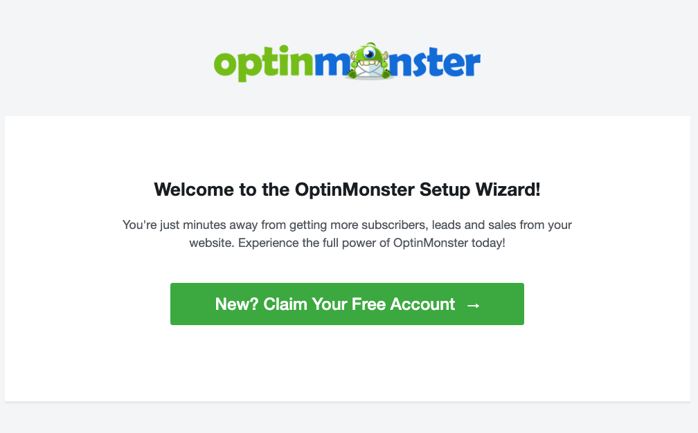 After you’ve activated the plugin, an OptinMonster setup wizard should appear.
