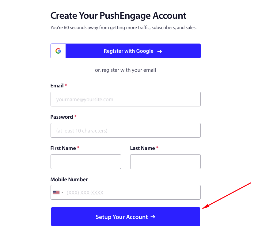 Once you’ve finished entering your e-mail, password, and additional information, click on the Setup Your Account button.