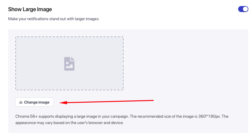 First, enter your title, notification message, the URL where you want your visitors to go on your site, and an image or a logo. To help attract attention to your notification, you can add emojis to the title and message.