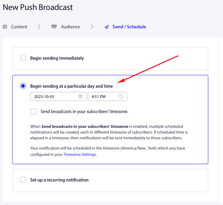 PushEngage lets you schedule when to send notifications. This feature allows you to set it up ahead of time and rely on the plugin to do the rest.