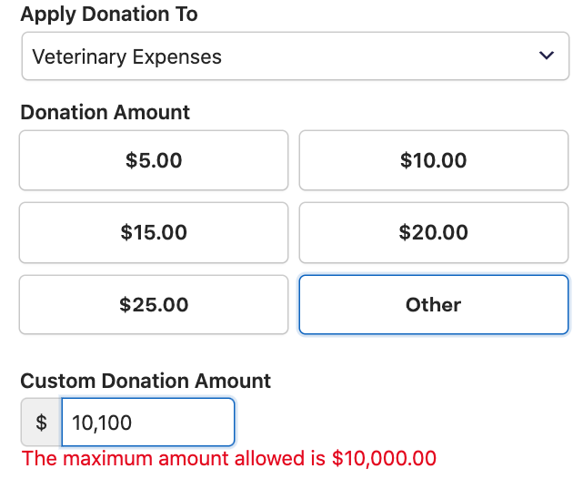 You can also customize the custom amount button to let your donors know there is a maximum donation amount.