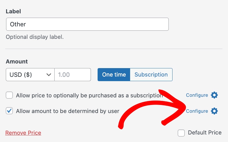 Then, click on the Payment tab. You’ll notice there are already price options provided for you.
