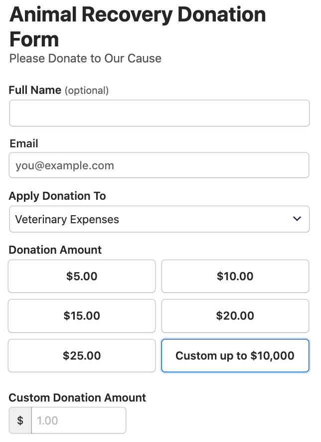 One of the best parts about the plugin is that it allows you to set up suggested donation amounts, create minimum and maximum amounts, and even lets your donors enter a custom amount.