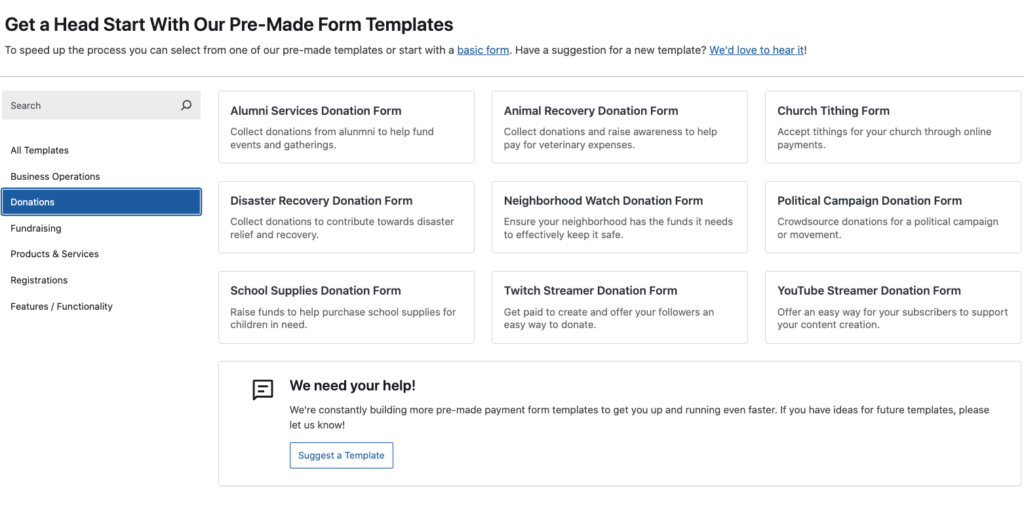 The plugin lets you create donation forms for your WordPress website in minutes without coding. It also provides several pre-built templates to help you get started.