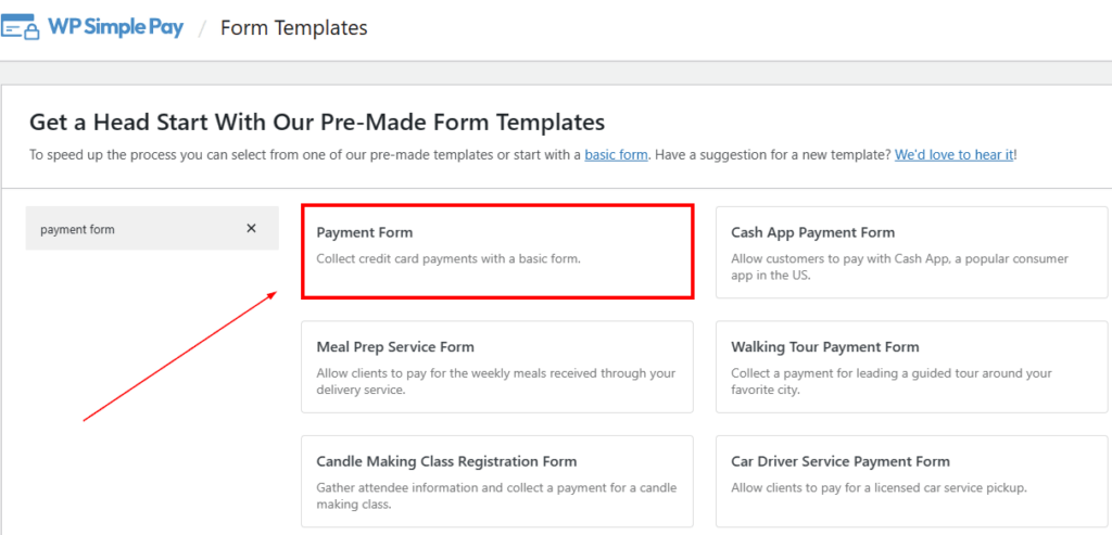 For the purpose of this tutorial, let’s go ahead and choose the basic Payment Form.