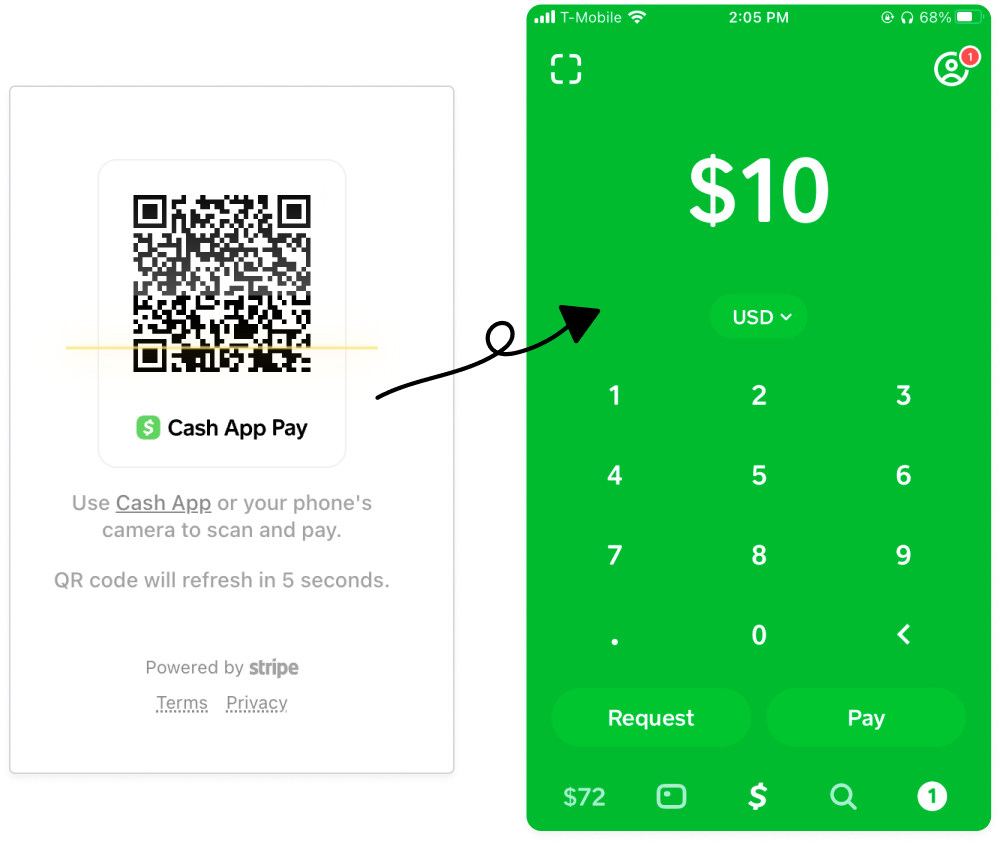 Users can easily pay with Cash App by scanning a QR code on their desktop or redirecting to the mobile app.