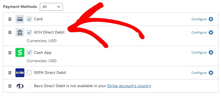When you’ve set up your price options and amounts, scroll down to select the payment methods you want to accept.
