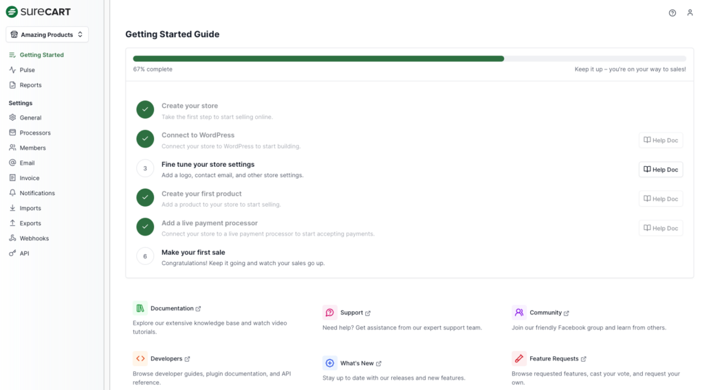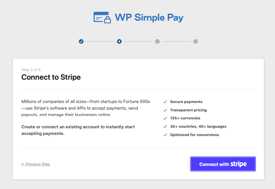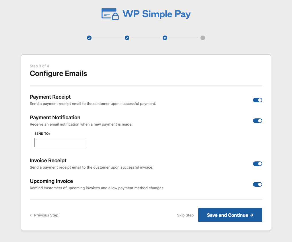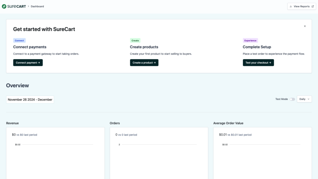 Both SureCart and WP Simple Pay offer quick setup guides following installation. With that being said, I found WP Simple Pay’s process much more user-friendly, especially for a beginner.