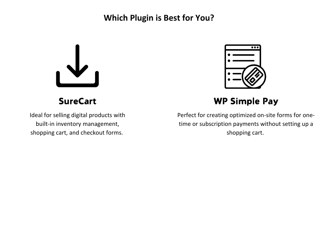 SureCart and WP Simple Pay are excellent options for selling physical and digital products. However, each plugin has its own unique strengths.