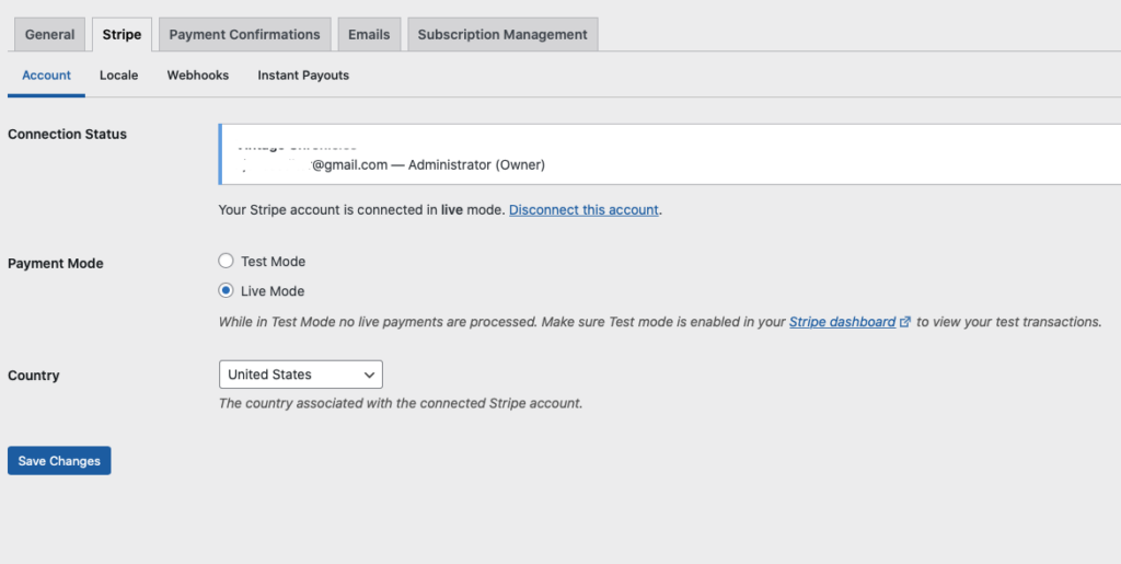 With WP Simple Pay, you can configure your Stripe settings and switch between Test mode and Live mode from the dashboard.