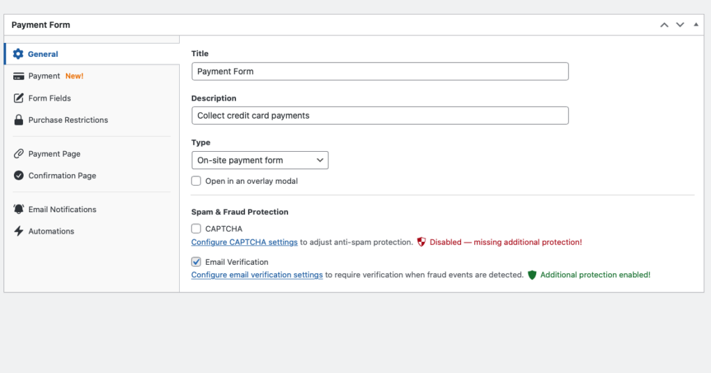 - On-Site Payment Forms: Easily embed payment forms to any page or post only on your website.