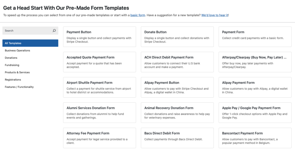 WP Simple Pay, in contrast, provides many pre-built templates designed to help you start accepting payments quickly.