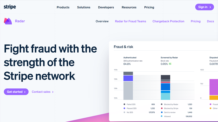 Radar is unique because it doesn’t just block fraudulent payments. It also informs you of why it happened so you can take steps to protect yourself in the future.